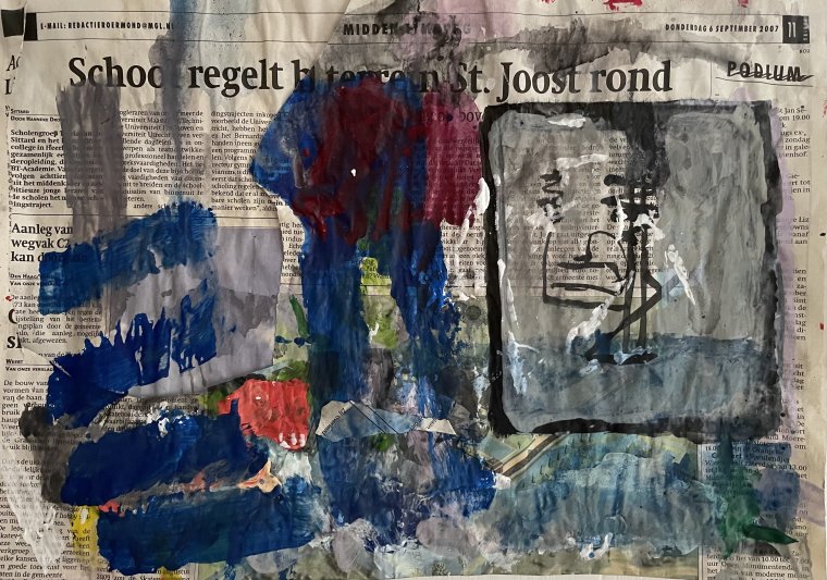 CAT REVIVED, ACRYLIC/COLLAGE/TAPE ON PAPER, 2015, 80CM x 60CM